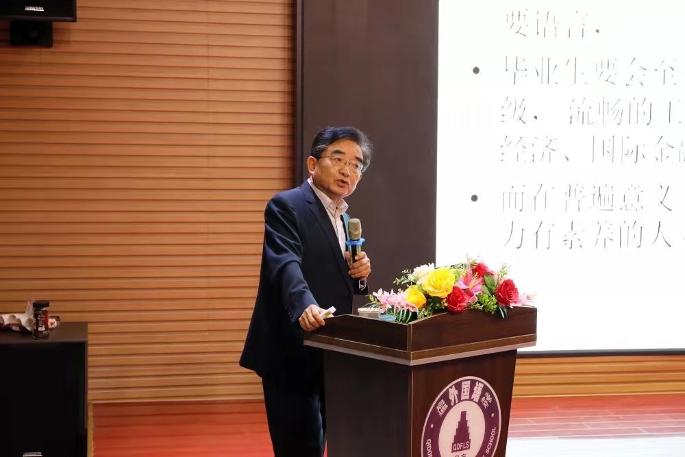 上午,北京外国语大学教授、国家考试中心英语项目组组长、北京外国语大学教育部国培项目首席专家、《英语学习》(教师版)名誉主编张连仲教授为教师们带来精彩的学术盛宴——Going global with the glocal mind。张教授从多角度、宽领域为大家解读和分析了英语教学的重要性。并强调“学英语,是要学会用英语表达自己的情感。”“要做国际水准的教育,让教育更有意义,而不是一味的‘四选一’。”张教授还为英语老师们带来了前沿的英语教学资讯和国际化教育的理解,并针对小、初、高不同年龄层次的学生提出了有针对性的教学方法。老师们不光要有“Grammar eye”“Functional eye”,更要有“Educational eye”。最后张教授用杜威的一句名言结束了自己的专题讲座:“If we teach today as we taught yesterday,then we rob our children of tomorrow.”(如果今天我们照过去的方式教,那就是剥夺我们小孩的未来。)