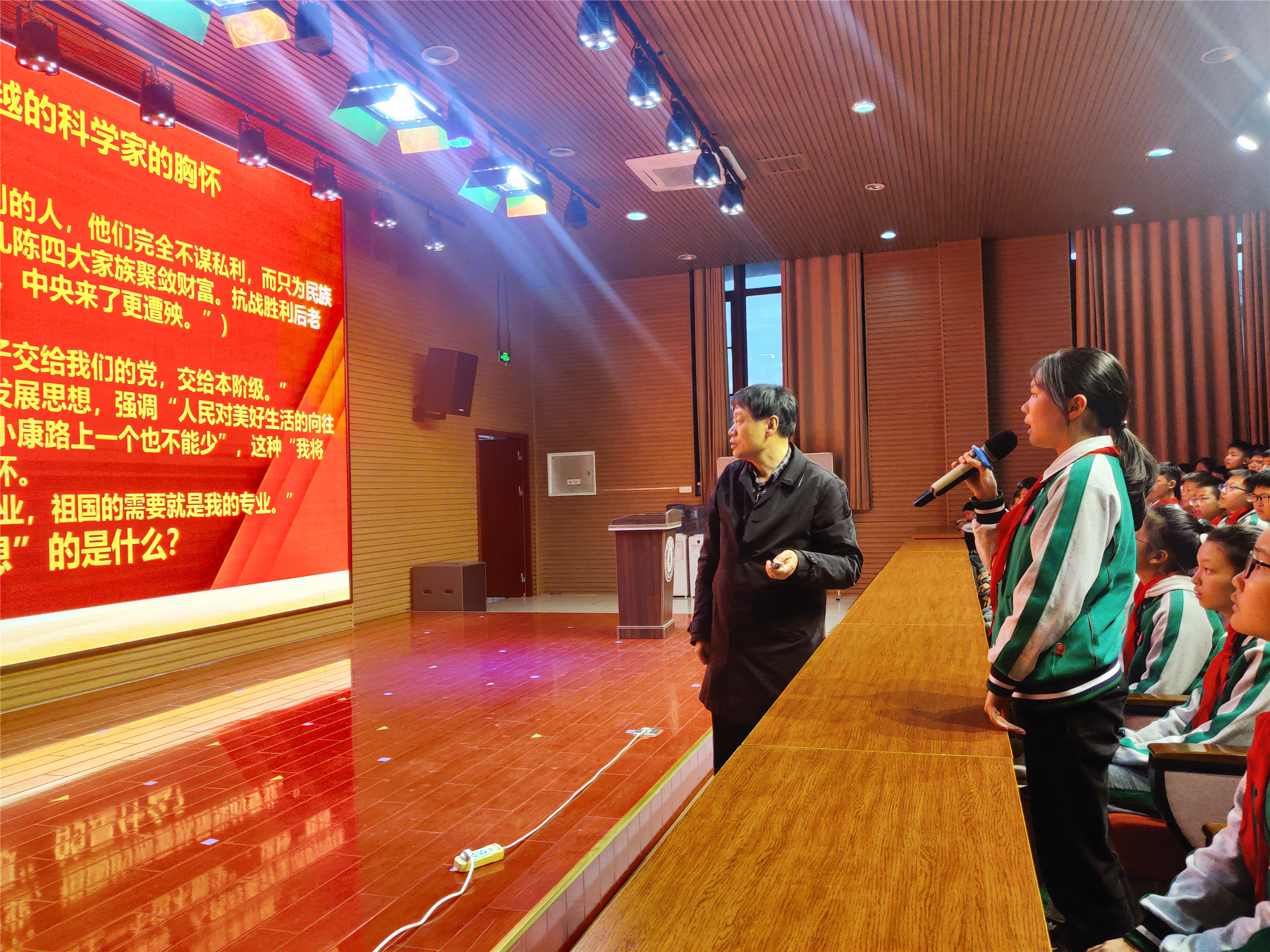 李校长的讲课注重师生互动、生生互动,扣人心弦。他不时的提出一些问题,启发学生思考:李大钊、毛泽东、朱德、周恩来有一个共同的名字叫什么?这些党的领导人有怎样的梦想?观看完影片后你有什么启发?从近现代发展史中,我们得到怎样启迪?面对问题,孩子们积极思考,侃侃而谈。他们谈见解、谈思想有深度、有宽度。