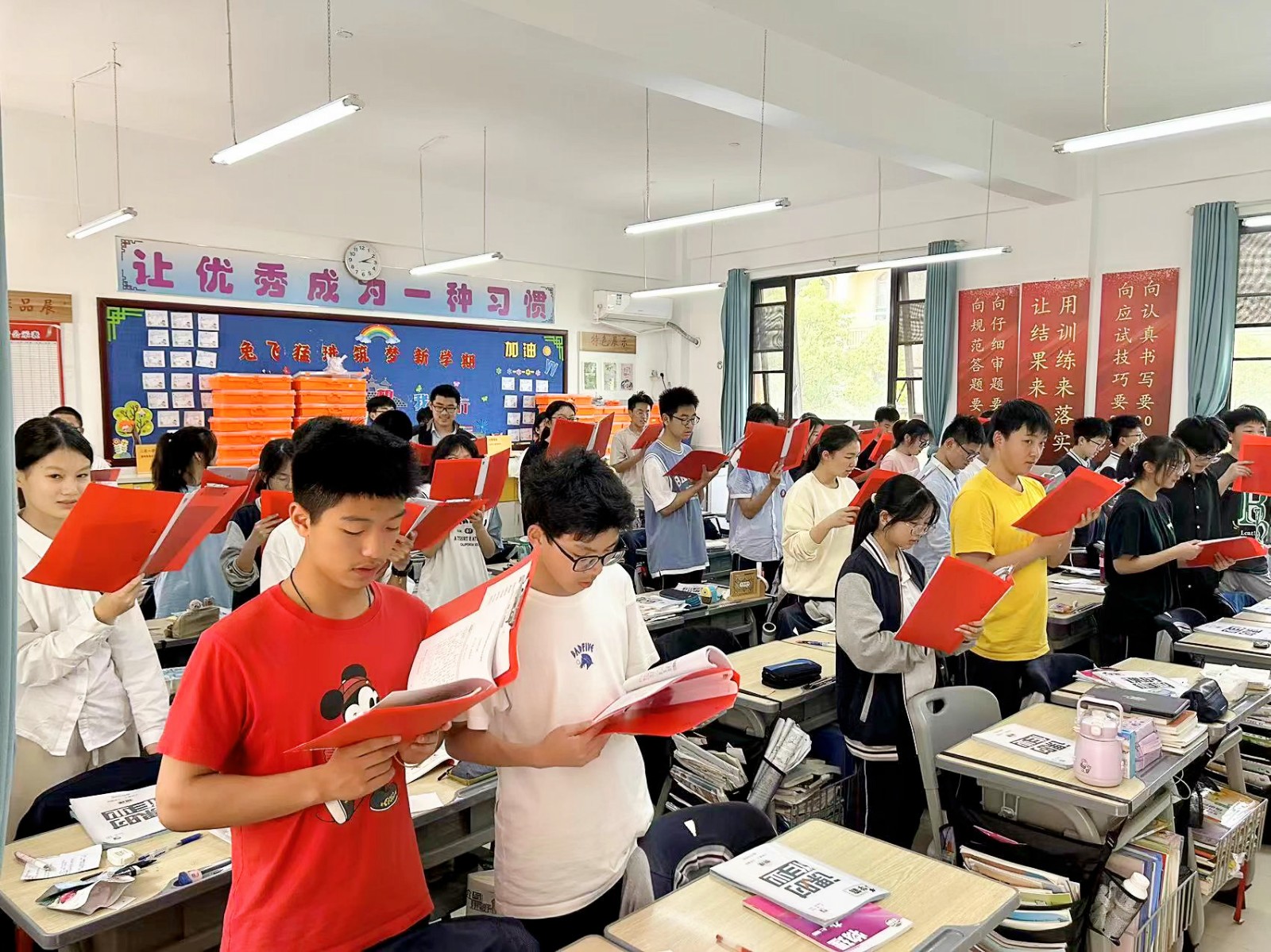 为此,启外初中部每天下午3:05—3:15之间,专门开设K歌时间,全体学生一起高歌一曲。