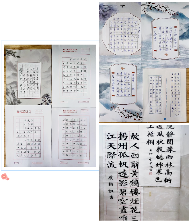 低年级学生一笔一画、工整有力书写的每一个字,都饱含了他们的耐心,体现了他们的努力与坚持;中、高年级的学生笔下有神,笔下的字在一横一竖、一撇一捺中,书写着他们对学习生活的无限向往。孩子们写得非常认真,一笔一画,仔细斟酌,字迹端正,令人赏心悦目!落笔纸上,一撇一捺展示着中华汉字之美,一笔一画点染着人间繁华。一个个美观的汉字从笔尖流淌,犹如一串串美好的音符,谱写成汉字书写的美妙乐曲。一支笔、一张纸,书有形之字,奏无声之乐,横竖撇点,风采尽显。