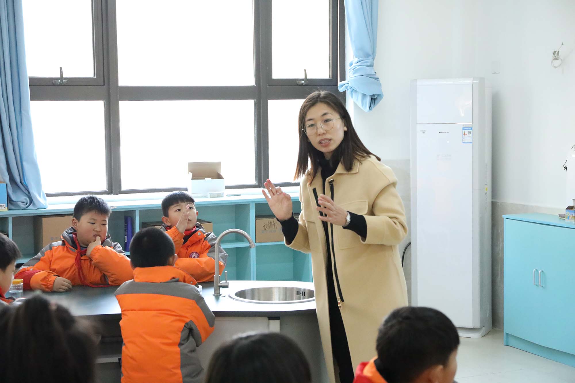 随后,代表团来到科学实验室观摩一堂科学课——“水珠从哪里来”。课由我校袁晶老师执教。在课上,袁老师采用“自问自探”的教学模式,通过“发现问题—提出猜想—设计实验—实验验证—得出结论”的课堂五步骤,以学生为主体,以提升自主探究能力为核心目标,让学生自己发现问题、自己研究问题、自己解决问题。课堂气氛热烈,学生学习热情高,思维活跃,教学效果很好。
